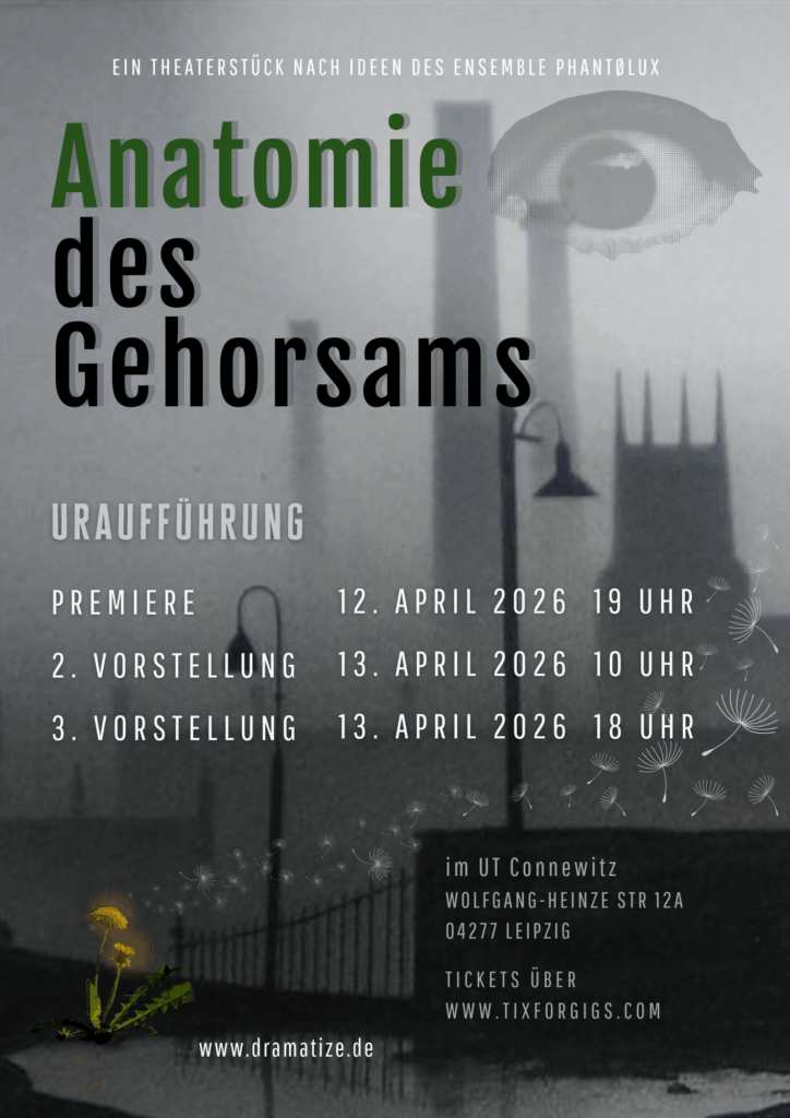 17:00 – 19:00 Uhr Jugendliche (14-20 Jahre), Karl Schubert Schule Lößnig mit geplanter Aufführung des selbst entwickelten Stücks „Forest und die Graue Stadt“ im UT Connewitz im April 2026